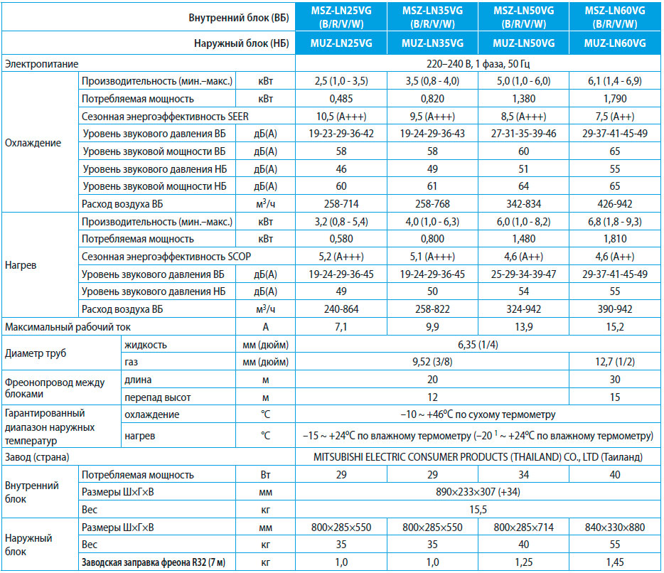 Выпускается также модель MSZ-LN*VGW белого цвета без прозрачного верхнего слоя. Цвет и тип пластика беспроводного пульта управления, поставляемого в комплекте, соответствует цвету внутреннего блока.